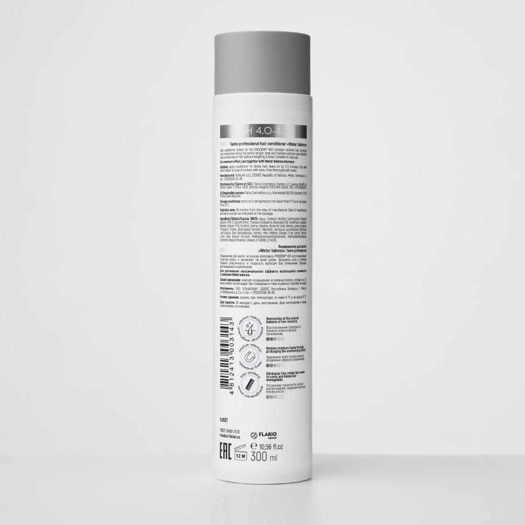 В сочетании с шампунем Tashe professional Water Balance работает как совершенное средство для интенсивного увлажнения, удержания влаги в волосе и легкого расчесывания.
