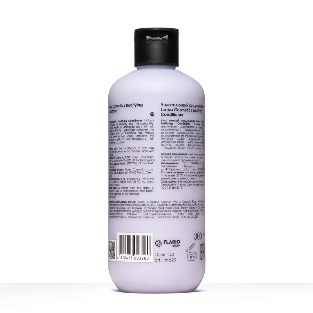 Уплотняющий кондиционер Limba Cosmetics Bodifying Conditioner уплотняет волосы, увеличивает эластичность и повышает их управляемость.