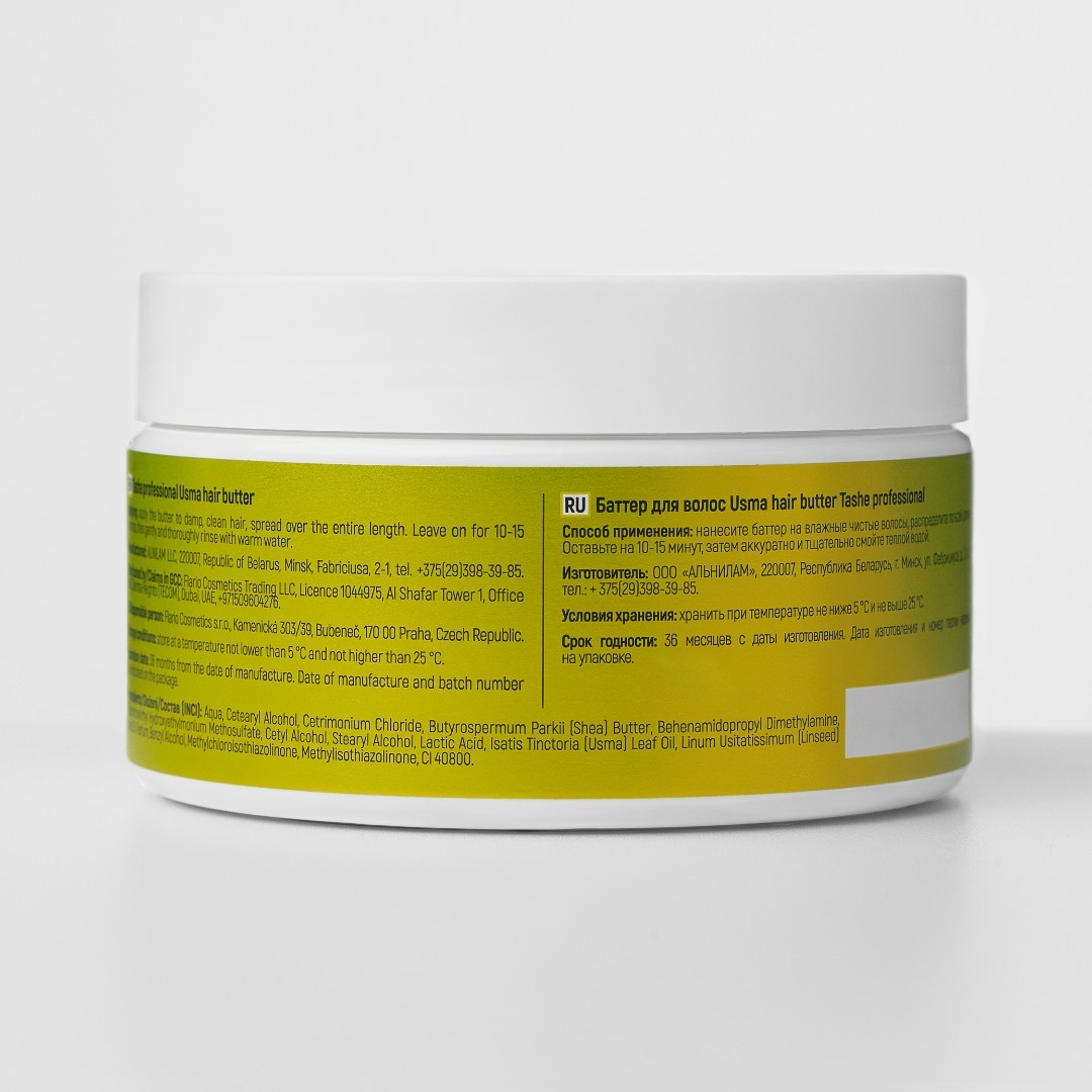 Баттер для волос изготовлен на основе 3-х масел: масла ши, масла усьмы и масла льна.