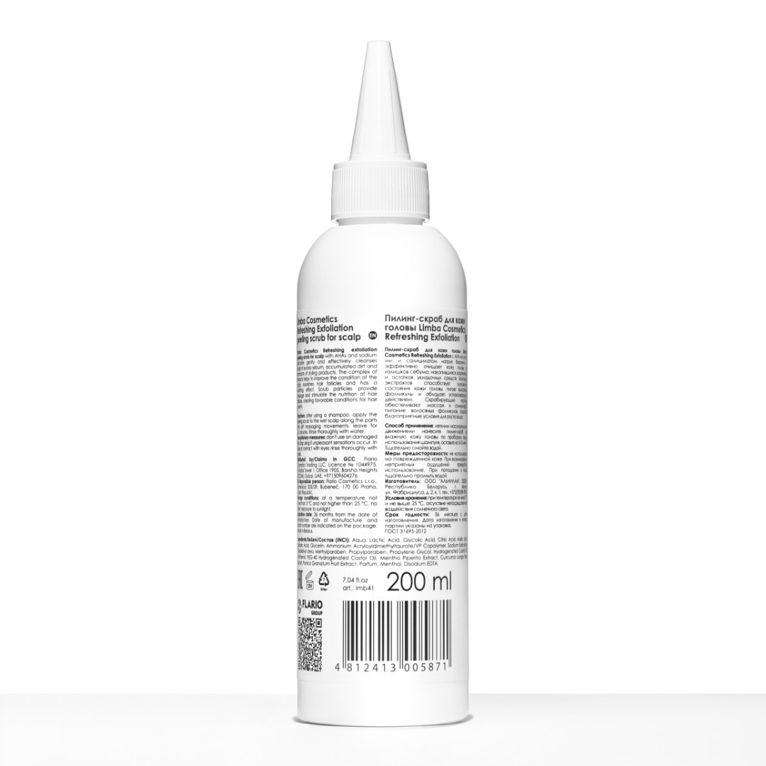 Описание: Пилинг-скраб для кожи головы Limba Cosmetics Refreshing Exfoliation с АНА-кислотами и салицилатом натрия бережно и эффективно очищает кожу головы от излишков себума, накопившихся загрязнений и остатков укладочных средств. Комплекс экстрактов способствует улучшению состояния кожи головы, питает волосяные фолликулы и обладает успокаивающим действием. Скрабирующие частицы обеспечивают массаж и стимулируют питание волосяных фолликул, создавая благоприятные условия для роста волос.