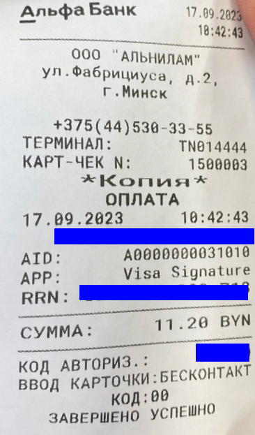 Ввод данных карточки осуществляется на защищенной авторизационной странице банка. Для оплаты необходимо ввести реквизиты карточки: номер, имя держателя, срок действия и трехзначный код безопасности. Трёхзначный код безопасности (CVV2 для VISA, CVC2 для MasterCard) — это три цифры, находящиеся на обратной стороне карточки. Если карточка поддерживает технологию 3DSecure или Интернет-пароль для держателей карточек БЕЛКАРТ, Вы будете перенаправлены на страницу банка, выпустившего карточку, для ввода кода безопасности. При оплате с помощью Apple Pay выберете карту из приложения Wallet, воспользуйтесь кодпаролем или иным способом аутентификации, в зависимости от того, какой способ выбран в приложении. При оформлении заказа с помощью Samsung Pay нажмите «Оплатить Samsung Pay», введите ваш Samsung Account и подтвердите покупку на вашем смартфоне (по отпечатку пальца, радужке или PIN-коду Samsung Pay).